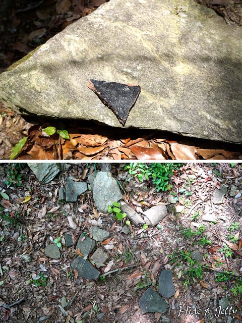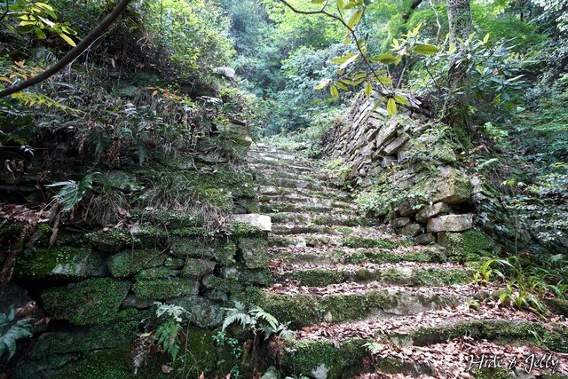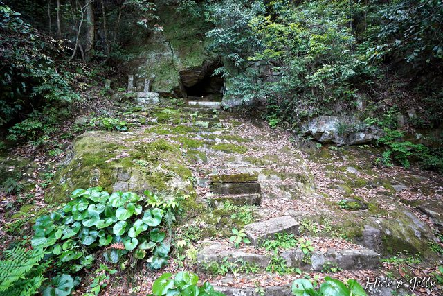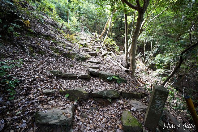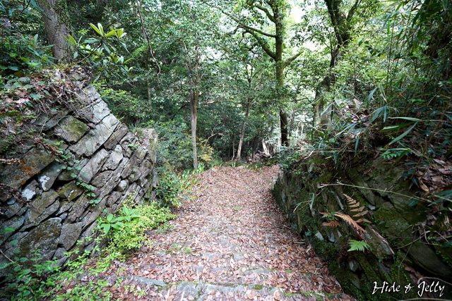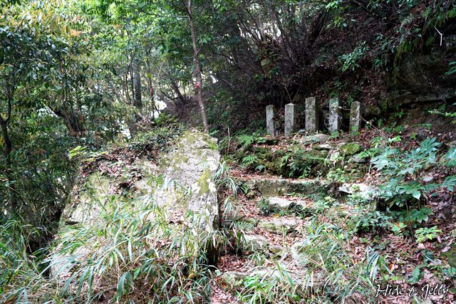找到正確的路徑後,大約往下走5~6分鐘,可以在一旁看到類似城門的石垣與階段,但一