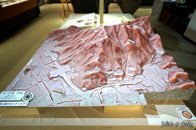 館內的高嶺城地勢模型,可以看出來高嶺城所在的鴻ノ峰真的很險峻,整個山頂部幾乎是