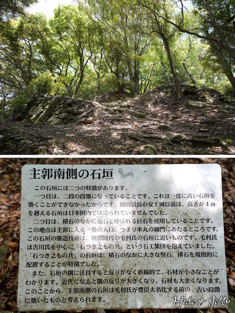 除了有兩段石垣外,也是在安土城築城以前唯一超過4公尺高的石垣構造,另一個特徵是
