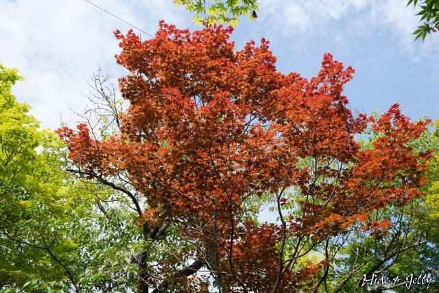 來是初夏就會轉紅的槭樹啊!一片綠中點綴著紅葉,真是太美啦!沒想到還沒秋天就提早