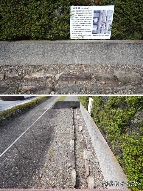 東側中段,則可以看到石組水路,即是以石塊砌成的排水系統,當時的建築工法,已經相