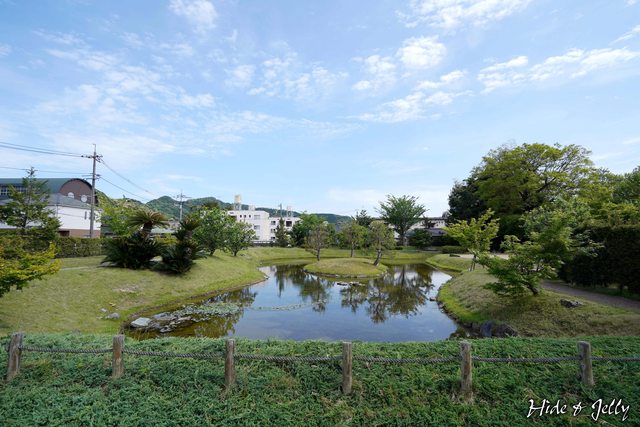 池泉庭園的形狀並非圓形,反而有那麼一點點像是古墳的鎖型。
