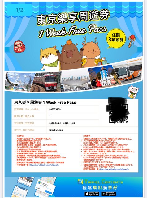 標題[讓售] 東京樂享周遊券*2/組