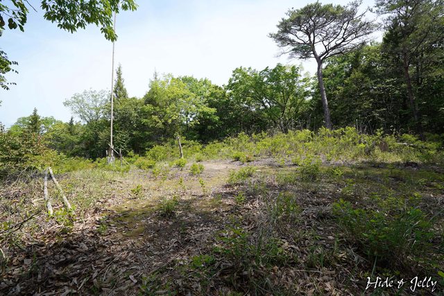 持宝院跡是山腰部分的一小塊平台,這裡立了一根高聳的旗幟,不過當天因為風勢的關係