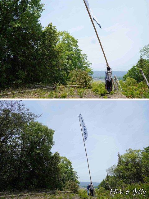 伯,正準備要將秀吉本陣跡的旗竿放倒。原來他在山下看到旗幟纏住了,準備來處理一下