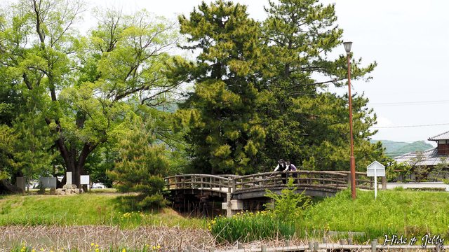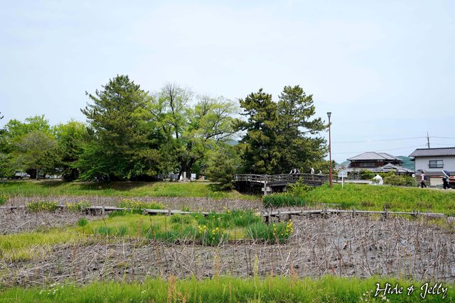 資料館前方的二の丸區域,以小木板橋橫跨蓮花池。