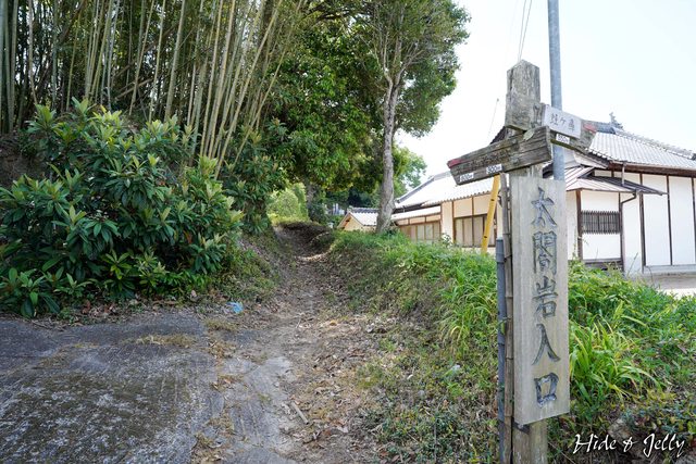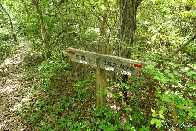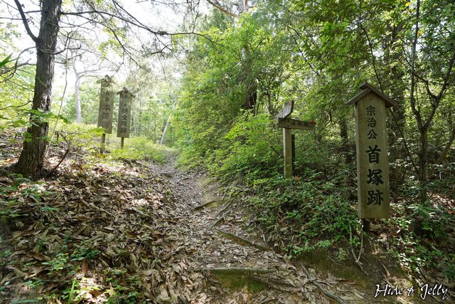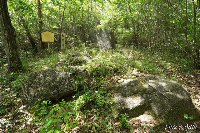 繼續往太閣岩走,可以看到一塊木牌寫著秀吉公軍馬繫留之地,是右方的山谷間,看了一