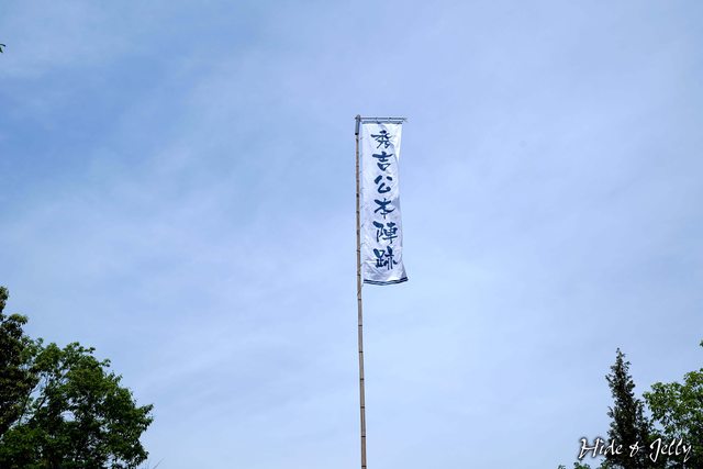 重新立好旗桿後,「秀吉公本陣跡」的旗幟終於出現在眼前了。我們也在與阿伯話別後,