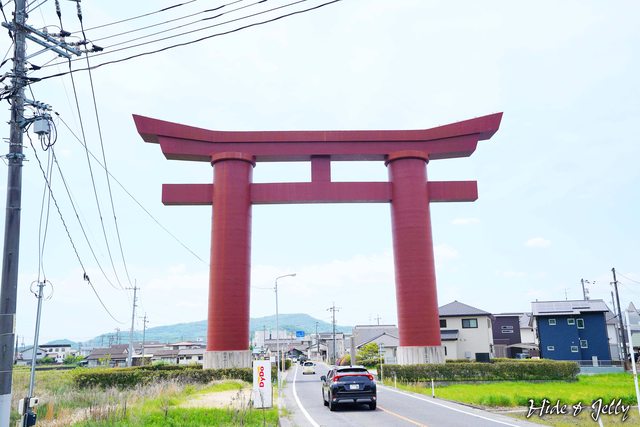 居前方。這座相當粗壯的大鳥居,是日本第四高的鳥居,高度達27.5公尺,不管遠看或是