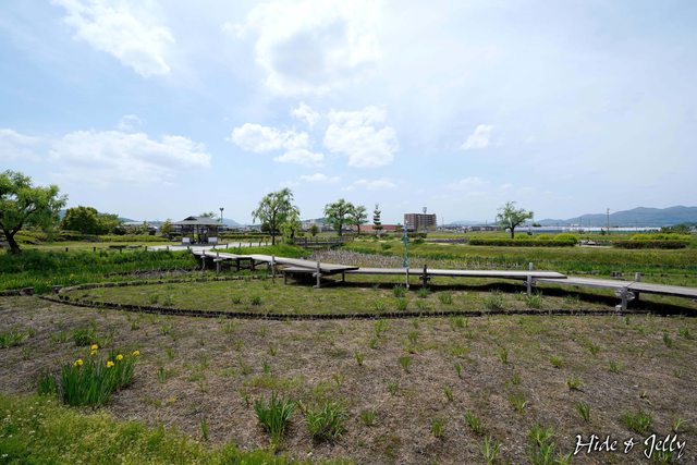 公園內復元了部分為了築堤所掘土的遺跡,以及引水入人工湖的水路,不過並沒有復原築