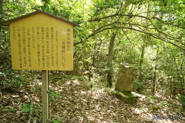 一旁的首塚跡,是清水宗治自刃後,秀吉將之後葬在此地的持宝院內,並建立一座五輪塔