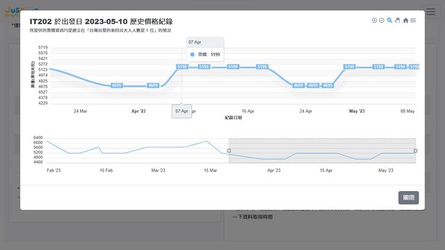 進階查詢中的票價軌跡皆為完整呈現,目前首頁的查詢只會呈現最近的10筆