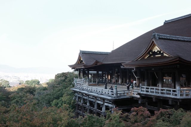 一大早的清水舞台沒甚麼人 零散的遊客都互相請對方幫忙拍照
