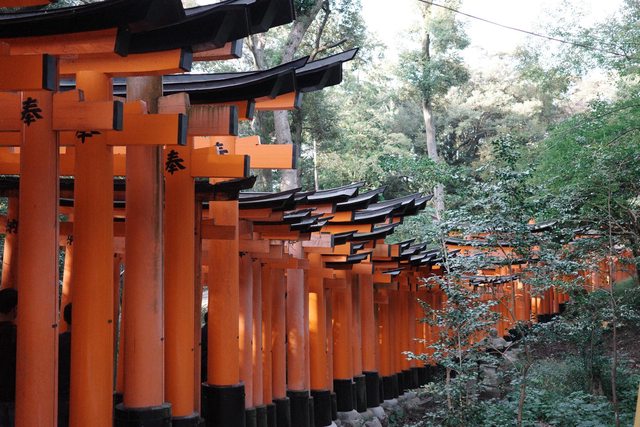不得不說千本鳥居蠻壯觀的 每一柱後面都有寫捐贈人