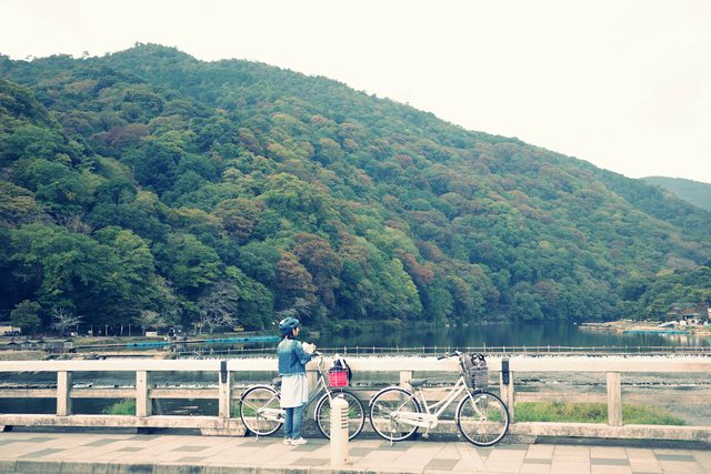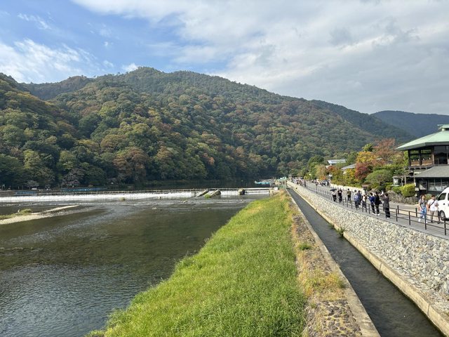 出車站後先往左邊走到渡月橋看一下山景
