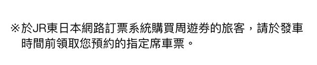 寫“於JR東日本網路訂票系統購買周遊券的旅客,請於發車時間前領取您預約的指定席車