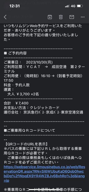我已經預訂了今天下午16:10的利木津巴士前往成田機場