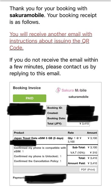 馬上可以收到購買明細跟esim下載資訊(都英文沒有中文資訊)