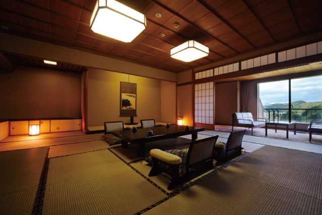 1.和室15畳+6畳 最上階:位於頂樓,所以視野寬廣。日幣42000間/晚。