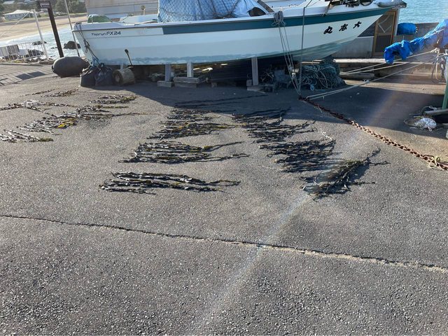 地上有漁民在曬海帶