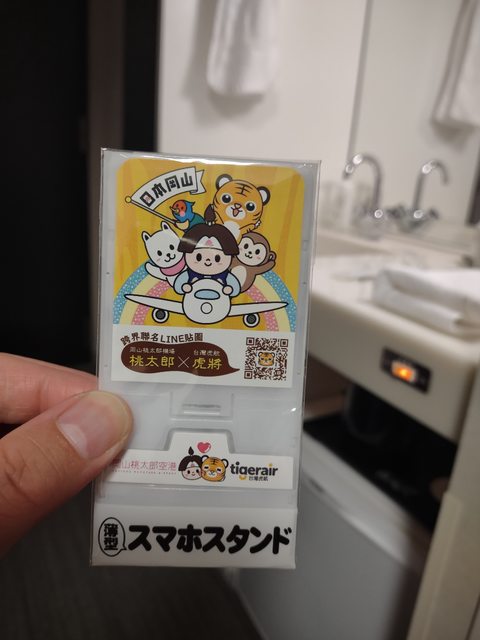 11/1開始 搭台灣虎航岡山航線 只要完成線上自助報到(台北出發) 當天在現場網路報到櫃檯 就能兌換一個多功能聯名多功能手機架喔 送完為止 產地是日本製造的 缺點就是少了一張紙本機票做紀念 https://i.imgur.com/BOqODMG.jpg