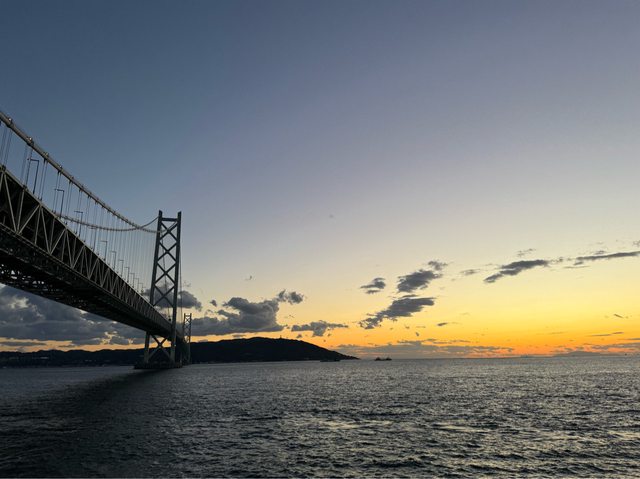 傍晚到明石大橋看著夕陽吃著烤鰻魚便當,