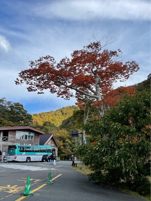 騎到十和田湖畔的公車站子の口還車