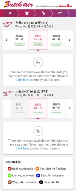 以上7天的桃園-大阪來回航班全部都沒有在販售了