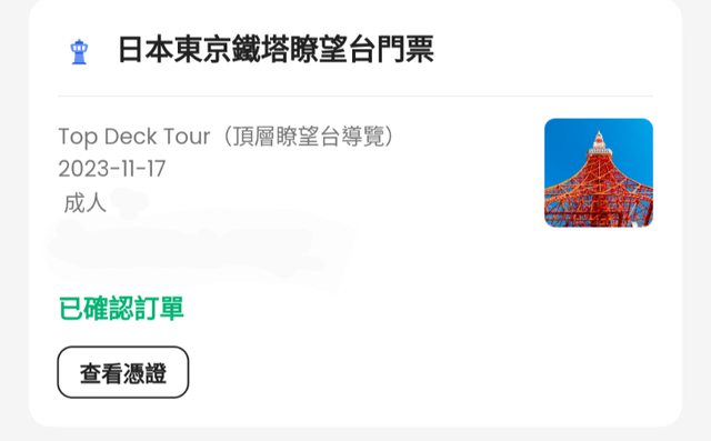 標題[讓售] 11/17東京鐵塔頂層Top Deck Tour門票