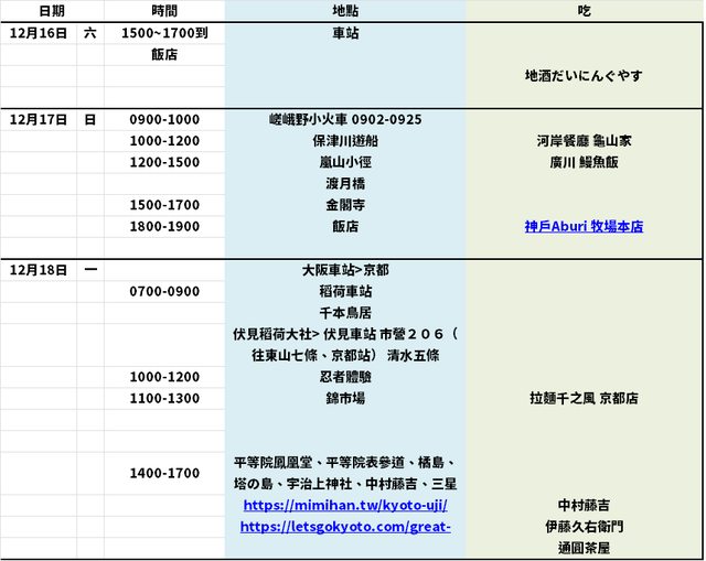 推 wwwwwwww : 你19號奈良可以直接劃掉,你自己預排沒注意到,清水 11/12 12:00