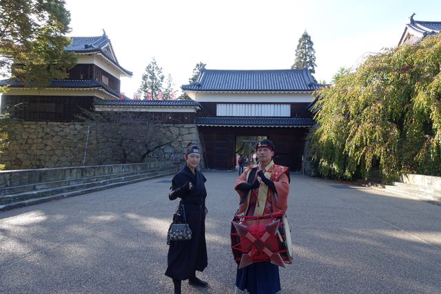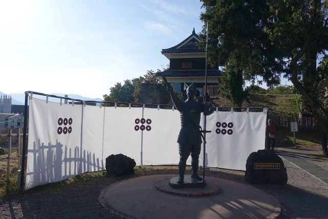 在他的後方便是上田城西櫓,可惜的是西櫓只有限定的時間才會開放參觀,