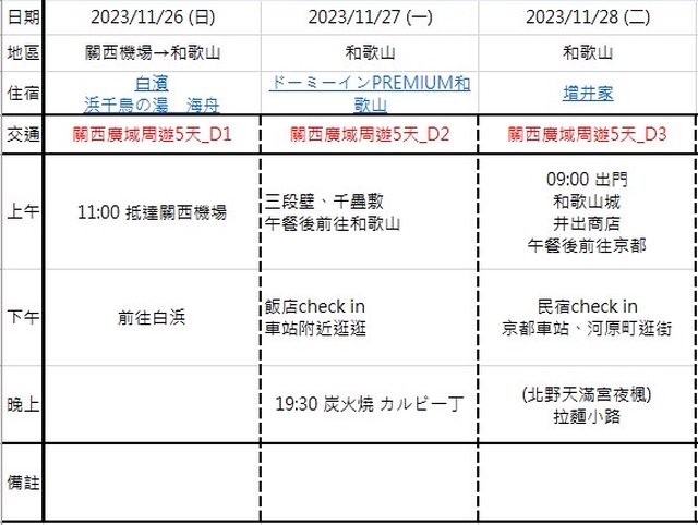 11/27 天氣不好備案是魚市場+咖啡廳或是直接去和歌山。