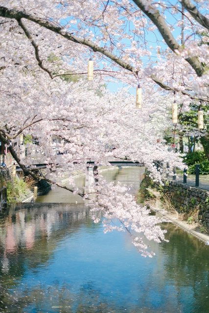 染井吉野將城崎溫泉打造出如夢似幻的景色,整個城鎮都能見到白雪紛飛般優美的櫻吹雪