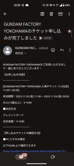 標題[讓售] 橫濱鋼彈11/24門票