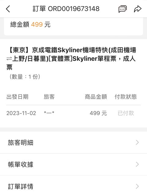 標題[讓售] 京城電鐵skyliner票券1張