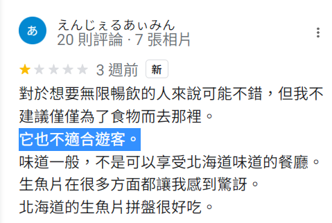 推 metallolly : 日本人口味跟我差蠻多的 我只會參考google評論負評 11/24 18:59