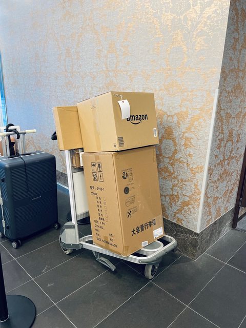 日亞的包裹多到飯店直接放推車上XD