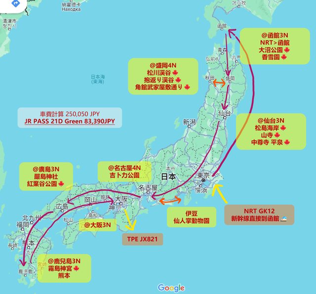 標題[遊記] 全日本 JR PASS 21天 住宿紀錄