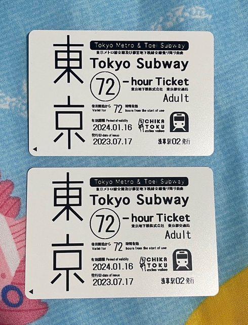 1. 讓售品項:東京地鐵乘車券72小時*2