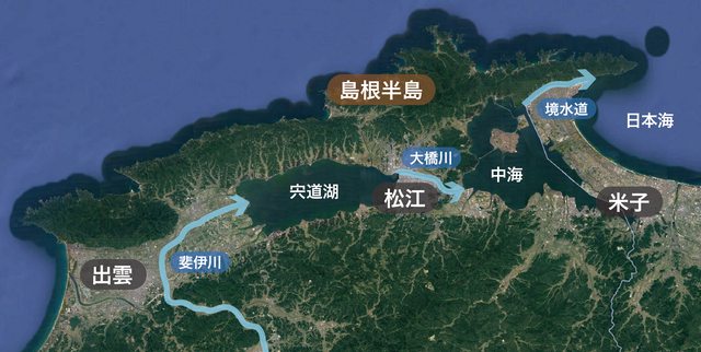 宍道湖是日本第七大湖,透過大橋川與中海相連,而中海又透過境水道與日本海聯通。海