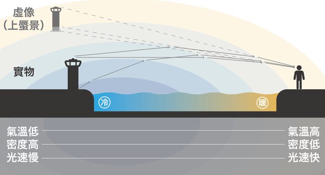 對岸的地物看起來浮在半空中。咦,為什麼會有「海市蜃樓」呢?