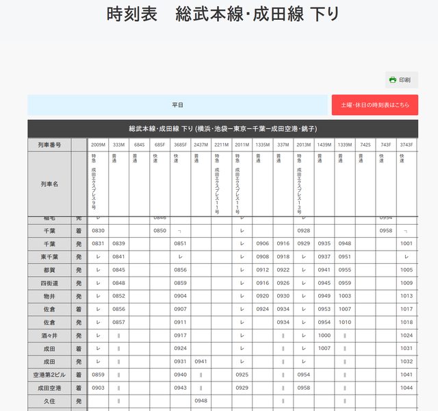JR與主要私鐵,網路上幾乎只剩新幹線和特急有類似的時刻表;
