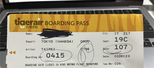 本次搭乘虎航桃園-羽田的紅眼班機