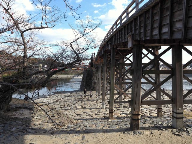 国的新幹線,可以在10分鐘內搭上轉乘到錦帶橋的巴士。在這之後的巴士全部接不上!巴士