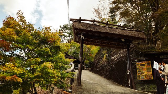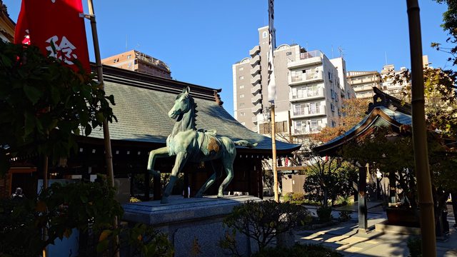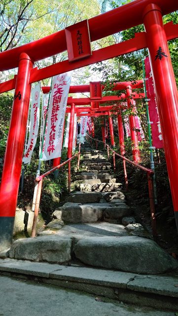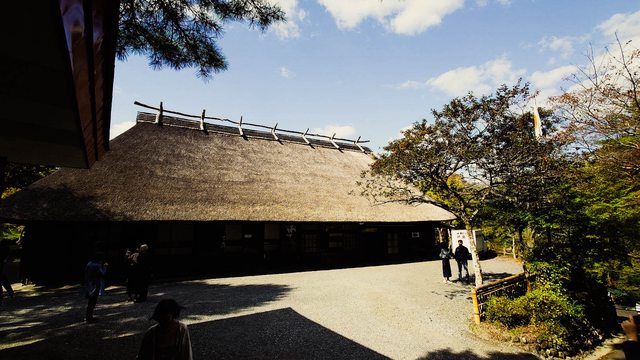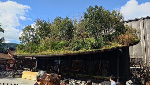 天滿宮本殿正在整修中,這是臨時的,屋頂放滿了植物