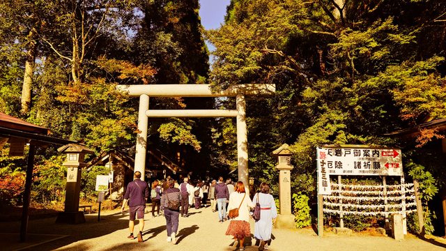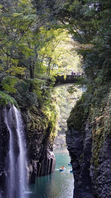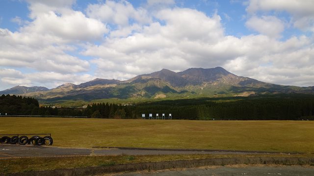 第二天的行程是在旅遊網站事先預訂的宮崎一日遊 ,坐大巴士往返宮崎,旅程包含上色見熊野座神 社、高千穗峽與天岩戶神社,含午餐費用換算後 大約2400台幣左右。單趟車程大約2小時半抵達 遠眺的阿蘇火山