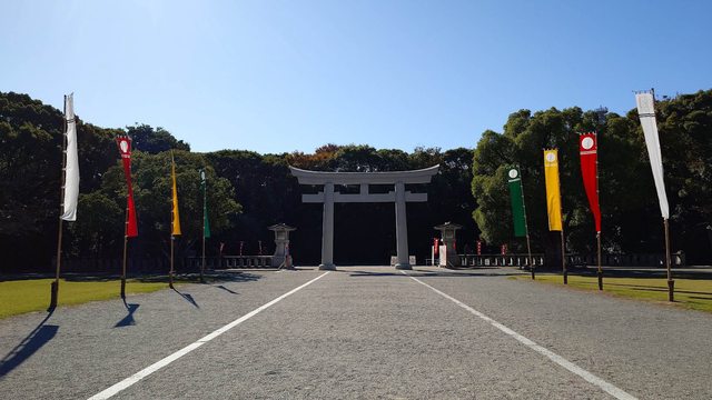 福岡縣護國神社,起源是為了表彰以福岡藩主 「黒田長知公」為首,縣內的舊藩主等在明 治維新不幸往生的人們,舉辦祭祀,所特地設立 的招魂社。