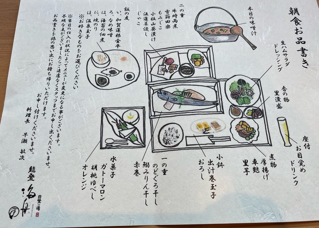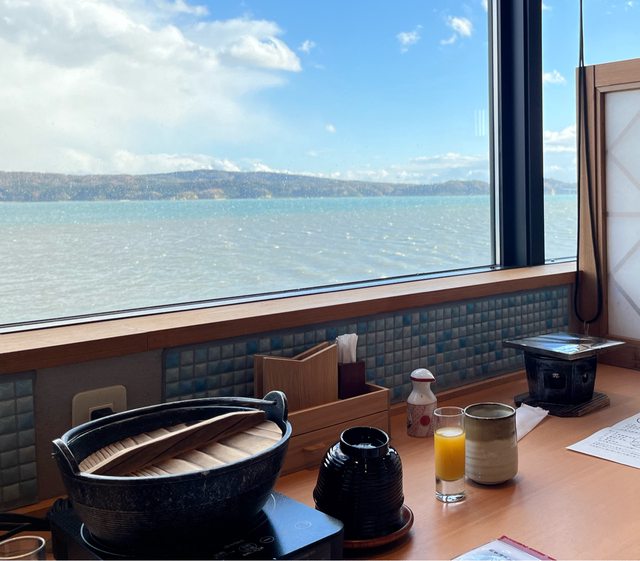 08:30到餐廳用餐,飯店安排靠窗的座位,可以邊享用日式套餐、邊欣賞七尾灣的景致。