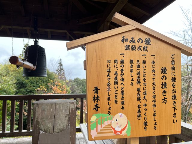寺旁有小徑可以往上走到寧靜之丘公園,除了享受森林浴,還有觀景台可眺望遠方。敲響