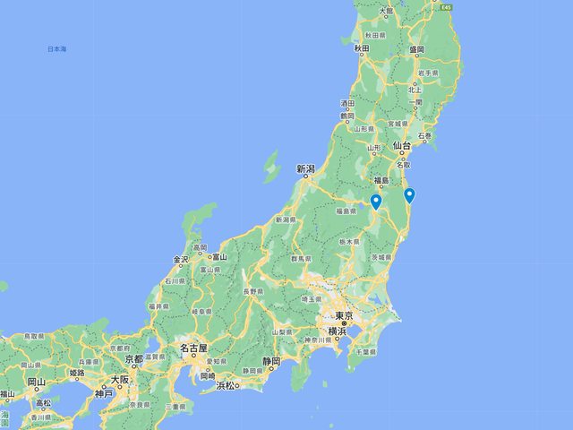 我在今年的7,8月分別去了位於郡山市以及浪江町的吉利蛋公園 以比例大一點的地圖看位置如下